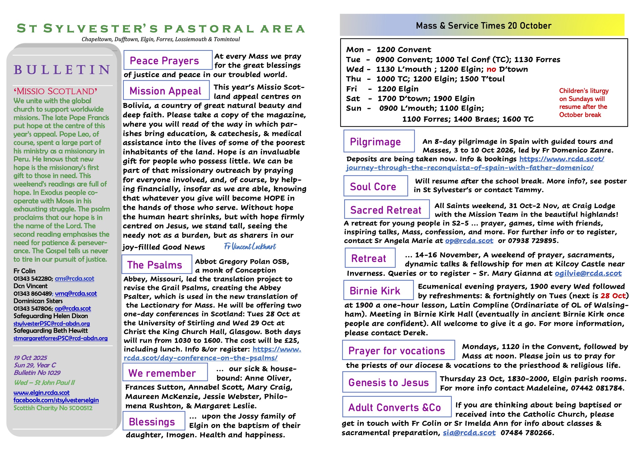 Sunday 29 – praying for peace in our world As the deer https://elgin.rcda.scot/wp-content/uploads/2022/01/zzzz-as-the-deer-1-vox.mp3 Church Streaming Licence CCLI 1932411 Bulletin? Scroll down or goto DOWNLOADS Registration Forms, Parish & Diocese? goto DOWNLOADS Mission Sunday Letter? goto DOWNLOADS . Sanctuary Lamp projected by sun, Elgin . . .